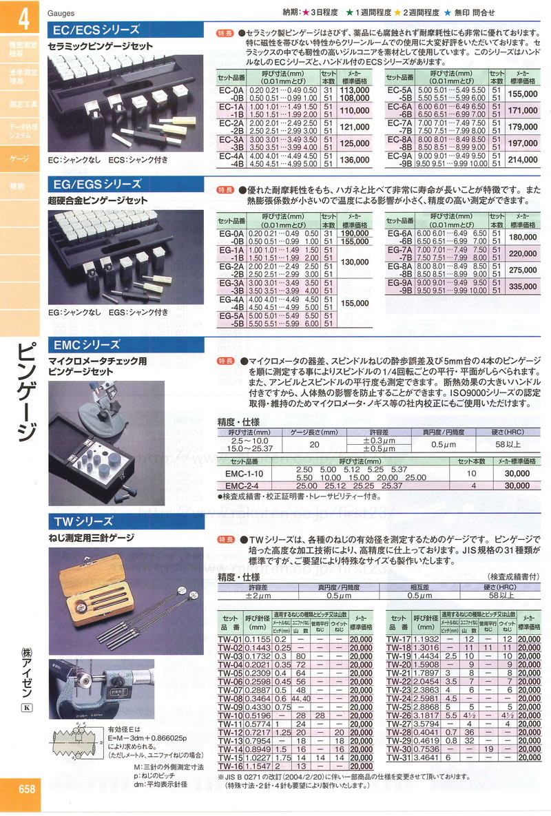 アイゼン ピンゲージ ねじ測定用三針ゲージ TW-15